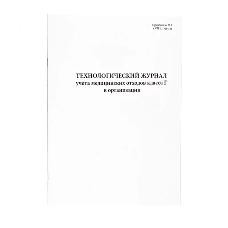 Технологический журнал учета медицинских отходов класса Г в организации (Приложение № 8 к СП 2.1.3684-21).