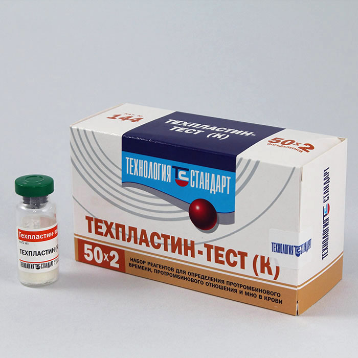 Набор реагентов Техпластин-тест (К) предназначен для малотравматичной и быстрой оценки протромбинового времени свертывания, протромбинового отношения и международного нормализованного отношения (МНО) в капиллярной крови. Измерение рекомендуется проводить на коагулометре с механическим принципом регистрации результатов (например, коагулометре «Минилаб 701», фирмы «Юнимед», коагулометре «Тромбо-стат» фирмы «Behnk Elektronik» или др.). Определение протромбинового времени используется для тестирования факторов протромбинового комплекса (II - протромбина, V, VII, X) и контроля за лечением антикоагулянтами непрямого действия.
