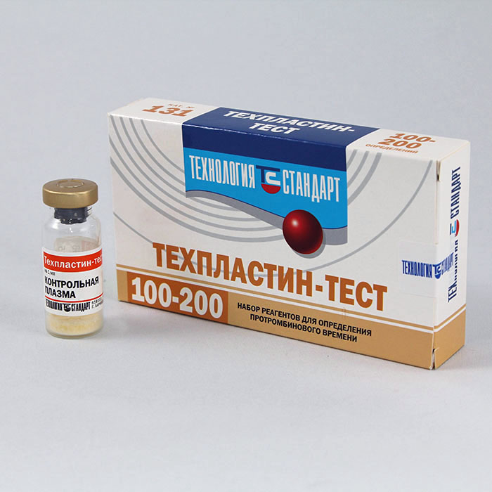 Набор реагентов Техпластин-тест предназначен для оценки протромбинового времени свертывания. Измерение проводят на коагулометре или мануально. Определение протромбинового времени используется для тестирования факторов протромбинового комплекса (II - протромбина, V, VII, X) и контроля за лечением антикоагулянтами непрямого действия.