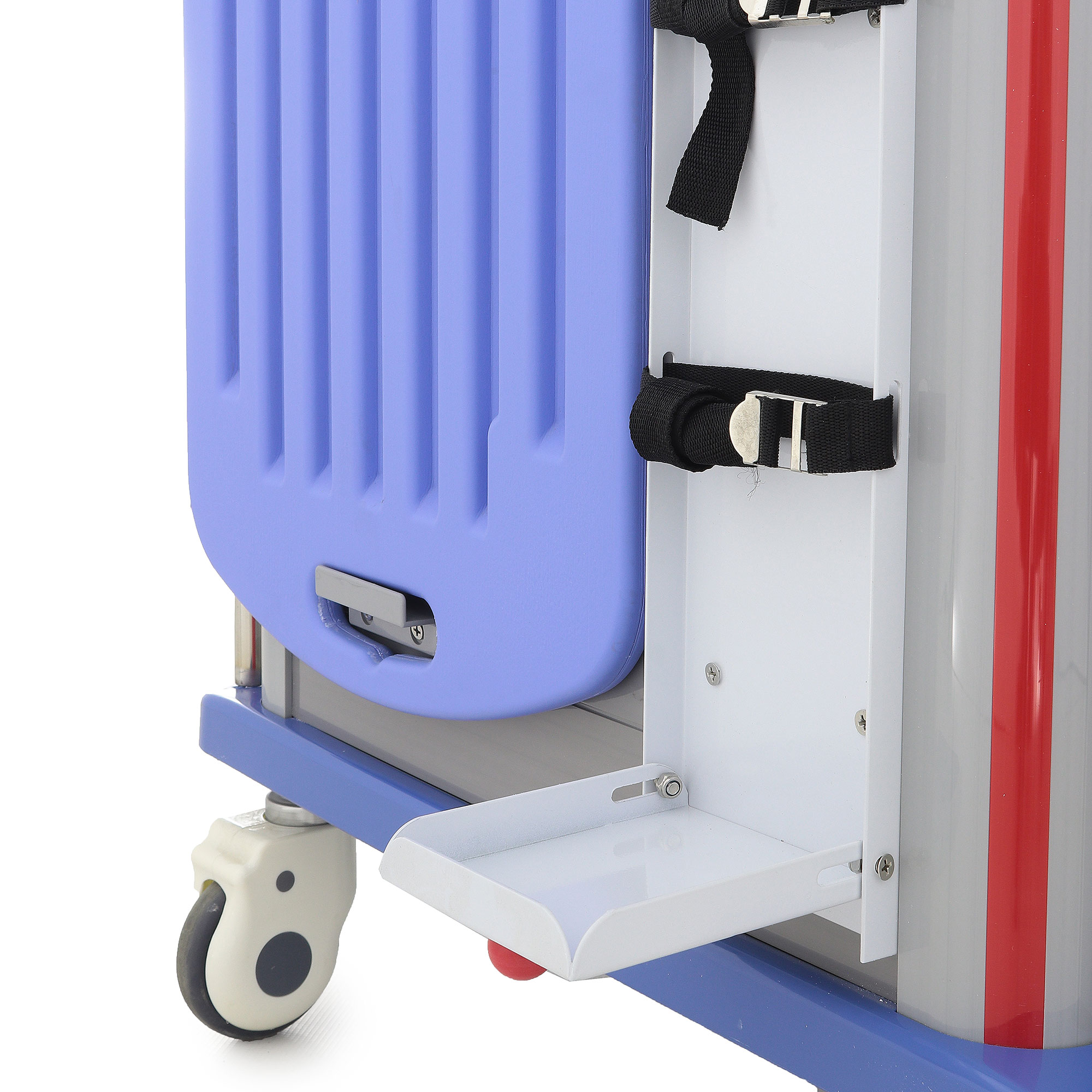 - Универсальность: Поворотный столик с ремнями для дефибриллятора, доска для реанимации и розетка для подключения оборудования.