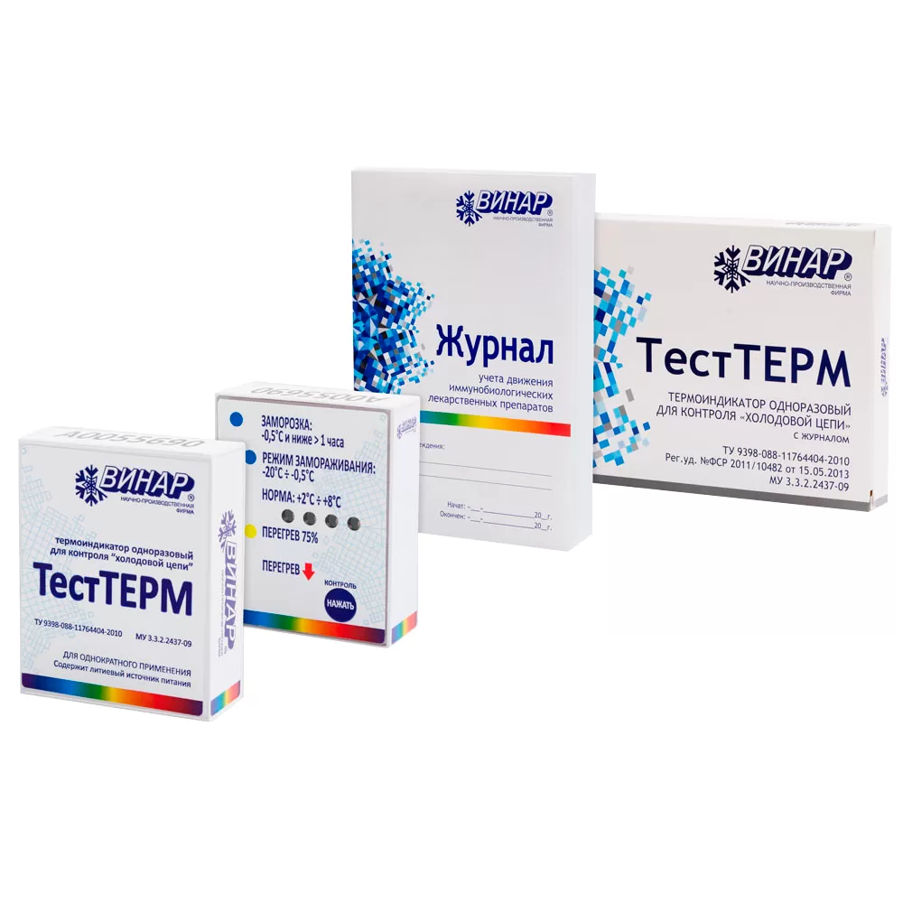 Термоиндикатор "ТестТЕРМ" предназначен для контроля соблюдения температурно-временного режима при транспортировании медицинских иммунобиологических препаратов, крови и ее препаратов, трансплантатов, диагностических тест-систем, пищевых продуктов и другой продукции, требующих соблюдения контролируемых термоиндикатором температурно-временных условий, всеми видами транспорта, в том числе вручную, в транспортной упаковке производителя, термоконтейнерах, термосумках и хранении на предприятиях-изготовителях, аптечных складах и складах Роспотребнадзора, в лечебно-профилактических и аптечных организациях и других организациях и учреждениях, в том числе и дистрибьюторских, задействованных на всех четырех уровнях «холодовой цепи».
