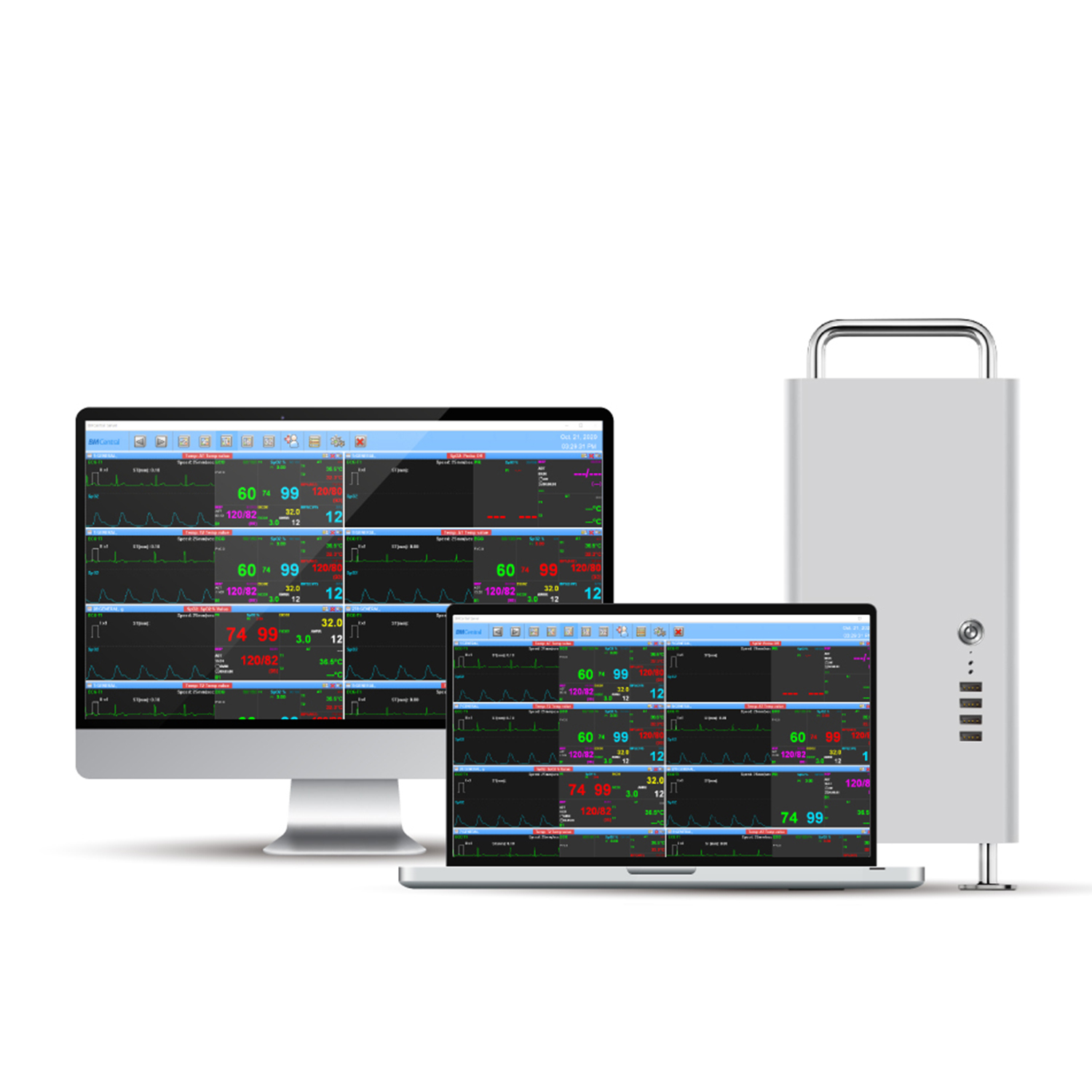 <p><span>Компьютерная станция для обработки информации (BM Central) - это система, централизованного мониторинга пациентов по сети (проводная или беспроводная локальная сеть).</span></p>