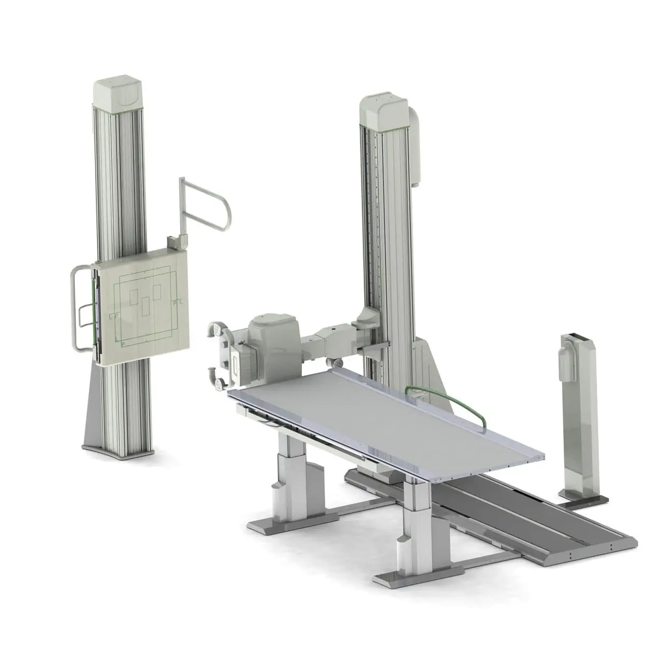 В базовую комплектацию аппарата X Fit входит стационарный стол снимков с плавающей декой, который может быть опционально оснащен моторизованным лифтом стола, стойка излучателя и стойка снимков.