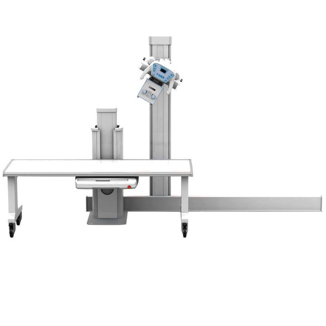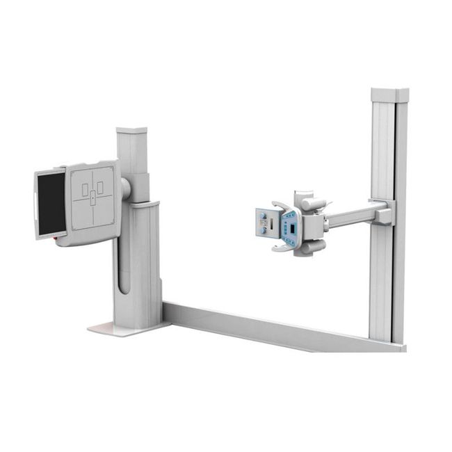 Аппарат цифровой рентгеновский JUMONG, вариант исполнения JUMONG E – цифровой рентгеновский аппарат на 2 рабочих места с оригинальным конструктивным исполнением стойки для вертикальной рентгенографии.