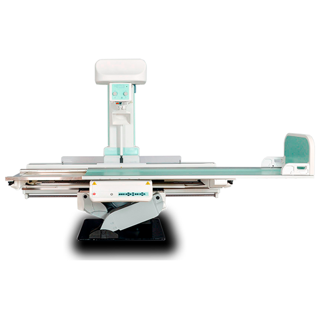 Комплекс оснащается цифровым динамическим плоскопанельным детектором формата 43×43 см для проведения рентгенографии, линейной томографии и рентгеноскопии.