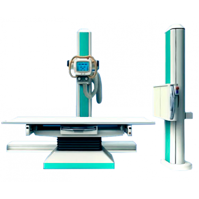Комплекс предназначен для выполнения рентгенографии органов грудной клетки, брюшной полости и костно-суставной системы человека. Он включает в себя стол снимков для горизонтальной рентгенографии и вертикальную стойку снимков для вертикальной рентгенографии.