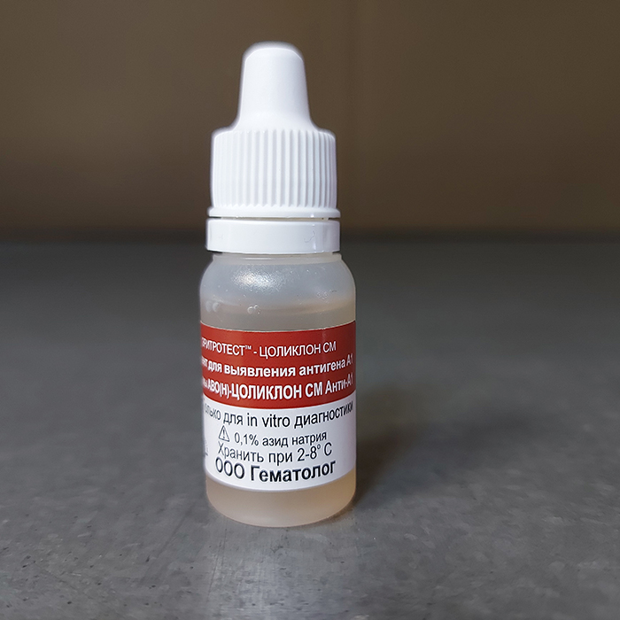 ЭРИТРОТЕСТ-ЦОЛИКЛОН Анти-А1 (лектин) — реагент, разработанный для дифференциации А1 и более слабых форм А антигена по силе агглютинации. Реагент вызывает полную агглютинацию эритроцитов А1 и А1В. С эритроцитами, содержащими А2 или более слабые формы А антигена, ЦОЛИКЛОН Анти-А1 Лектин не реагирует, либо в отдельных случаях дает неполную мелкозернистую агглютинацию. Предназначен для реакции агглютинации на плоскости и в пробирках.