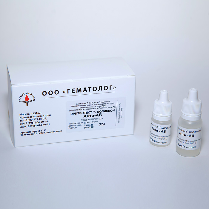 ЭРИТРОТЕСТ-ЦОЛИКЛОН Анти-АВ – реагент, представляющий собой смесь реагентов Анти-А и Анти-В. Может быть использован как дополнительный контроль при АВО-типировании.