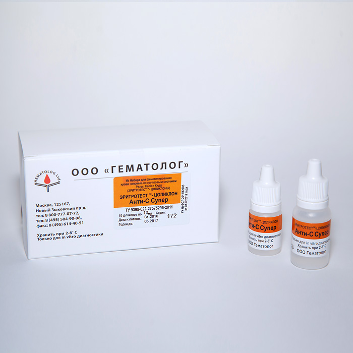 ЭРИТРОТЕСТ-ЦОЛИКЛОН Анти-C Супер содержит полные (IgM) анти-C антитела и выявляет rh’(C) антиген системы резус, в реакции прямой гемагглютинации на плоскости, в пробирках или в микроплате.