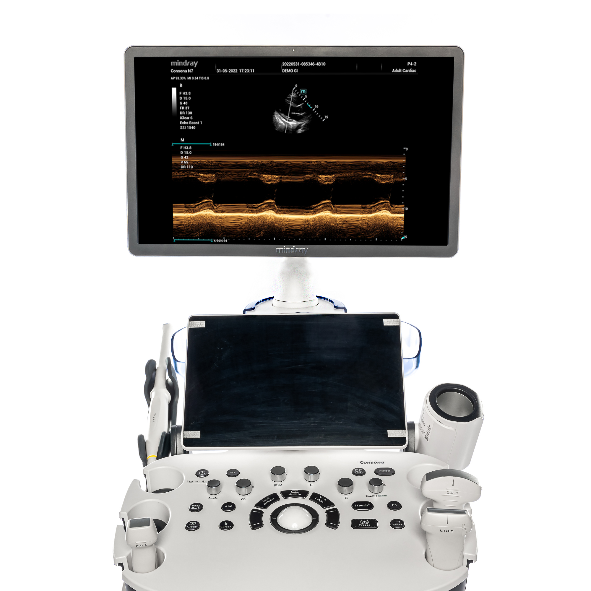 УЗИ аппарат Mindray Consona N7P в зависимости от используемого датчика ультразвукового и совместимой биопсийной насадки предназначена для абдоминальных, гинекологических, акушерских, педиатрических, кардиологических, скелетно-мышечных, сосудистых, неврологических, интраоперационных, урологических исследований, а также исследований органов грудной клетки, малых органов, головного мозга и плевральной полости, для наведения пункционной иглы при проведении процедуры биопсии под контролем ультразвуковой системы.