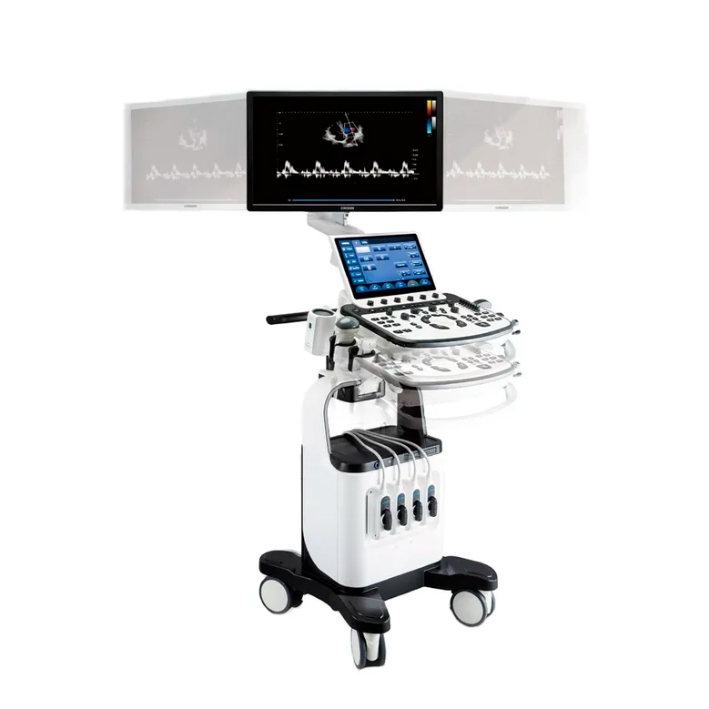 Практичный дизайн УЗИ аппарата Chison Qbit 12 сочетает лучшие разработки популярной серии мобильных систем и современные технологии сенсорного управления. Монитор с диагональю 23.8” позволит вам разглядеть изображение в мельчайших деталях. Новая сенсорная панель поможет моментально настроить и запустить различные режимы и функции. При этом, вы сможете воспользоваться классической клавиатурой с трекболом. Удобная тележка на колесах дополнена возможностью регулировки по высоте. Нижний блок, помимо прочего, включает четыре активных порта для подключения датчиков.