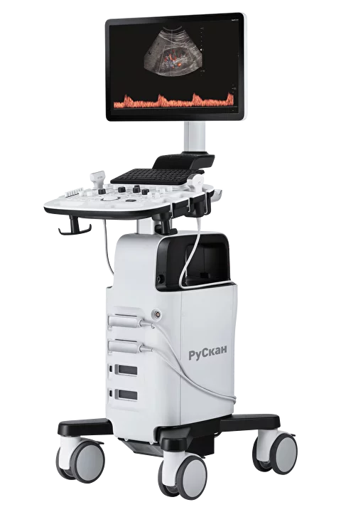 УЗИ-сканер РуСкан 50 - многофункциональный аппарат среднего уровня с цветным, энергетическим, тканевым, импульсно- и постоянно-волновым допплерами. Производится в России по технологиям Samsung Medison.