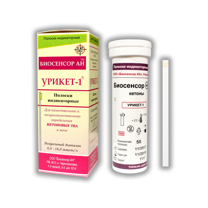 Полоски индикаторные УРИКЕТ-1 предназначены для визуального качественного или полуколичественного определения кетоновых тел в моче человека. Могут быть использованы для экспресс-анализа уровня кетонурии в медицинских учреждениях и в домашних условиях. Полуколичественное определение кетоновых тел в моче дает возможность контролировать уровень кетонурии, выбрать соответствующую диету, а также корректировать ход лечения.
