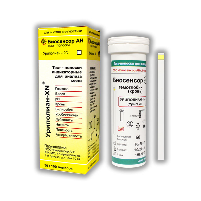 Тест-полоски индикаторные УРИПОЛИАН- 1he предназначены для визуального качественного и полуколичественного определения скрытой крови (гемоглобин, эритроциты) в моче.