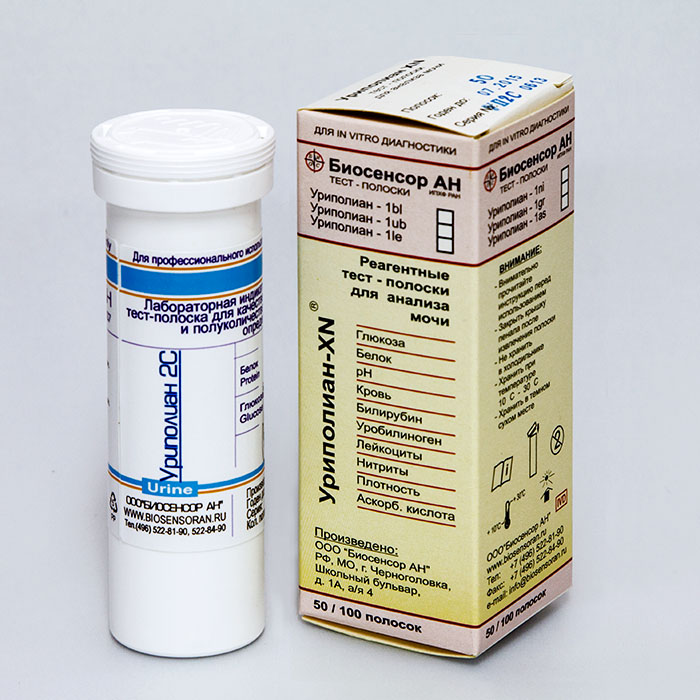 Тест-полоски индикаторные УРИПОЛИАН-2В предназначены для качественного и полуколичественного определения глюкозы и белка в моче.