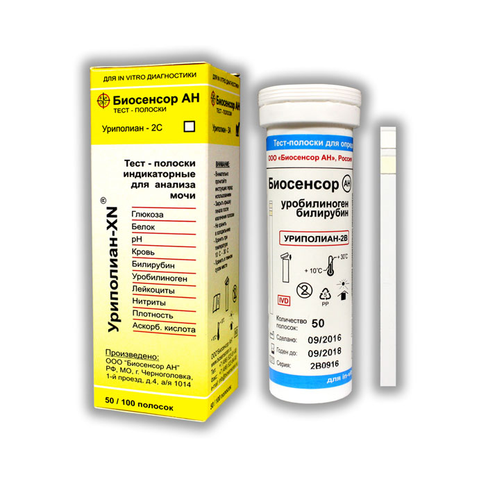 Тест-полоски индикаторные УРИПОЛИАН-2В предназначены для качественного и полуколичественного определения билирубина и уробилиногена в моче.
