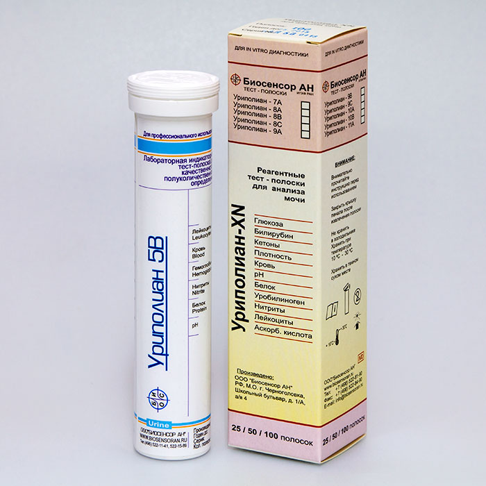 Тест-полоски индикаторные УРИПОЛИАН-5В предназначены для качественного и полуколичественного определения скрытой крови, белка, нитритов, лейкоцитов и рН в моче.