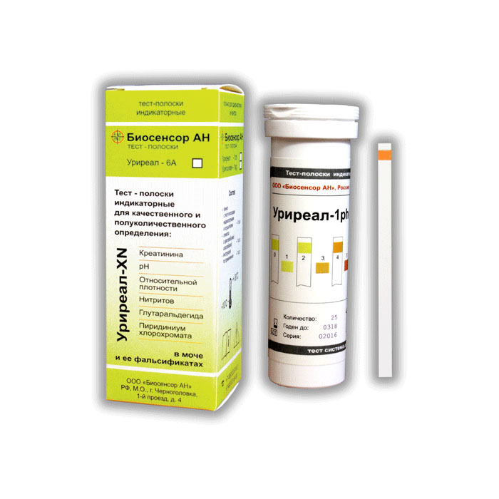 Тест-полоски индикаторные УРИРЕАЛ-1рН предназначены для качественного и полуколичественного определения рН (0.0-12.0) в жидкости. Можно использовать в любых биологических жидкостях. Аналог универсальной индикаторной бумаги чешской компании Lahema.
