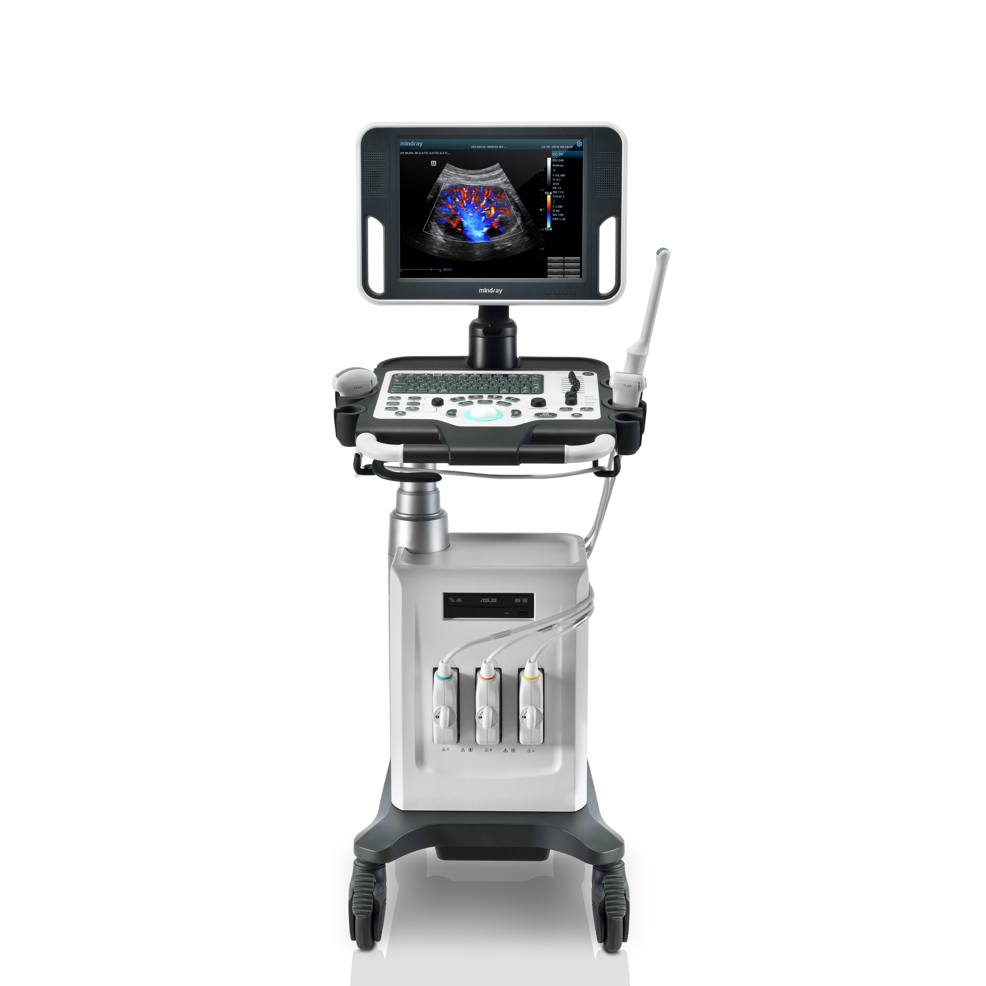 - iTouch™. Однокнопочная автоматическая оптимизация изображения в B-режиме, ЦДК и энергетическом допплере. Полезна при потоке пациентов: улучшает визуализацию за секунды, особенно в ситуациях, где нет времени на ручные корректировки (например, при сканировании в экстренных условиях или на приёме с высокой нагрузкой).