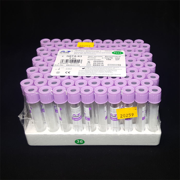 Вакуумная пробирка IMPROVACUTER для гематологический исследований с антикоагулянтом ЭДТА-К3.