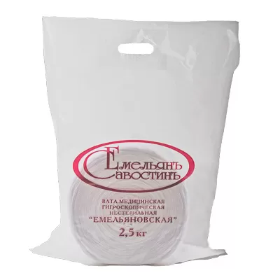 Вата медицинская гигроскопическая хирургическая хлопковая нестерильная ТМ "Емельяновская" по ГОСТ 5556-81.