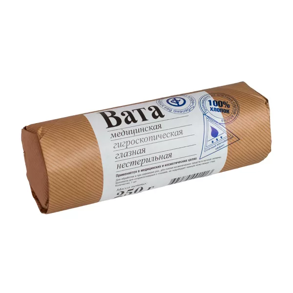 Вата медицинская гигроскопическая хирургическая хлопковая нестерильная, произведенная по ГОСТ 5556-81, имеет высокую степень прочеса (гарантирует отсутствие сорных примесей и включений), легко распределяется на параллельные слои. Хорошо впитывает и удерживает влагу.