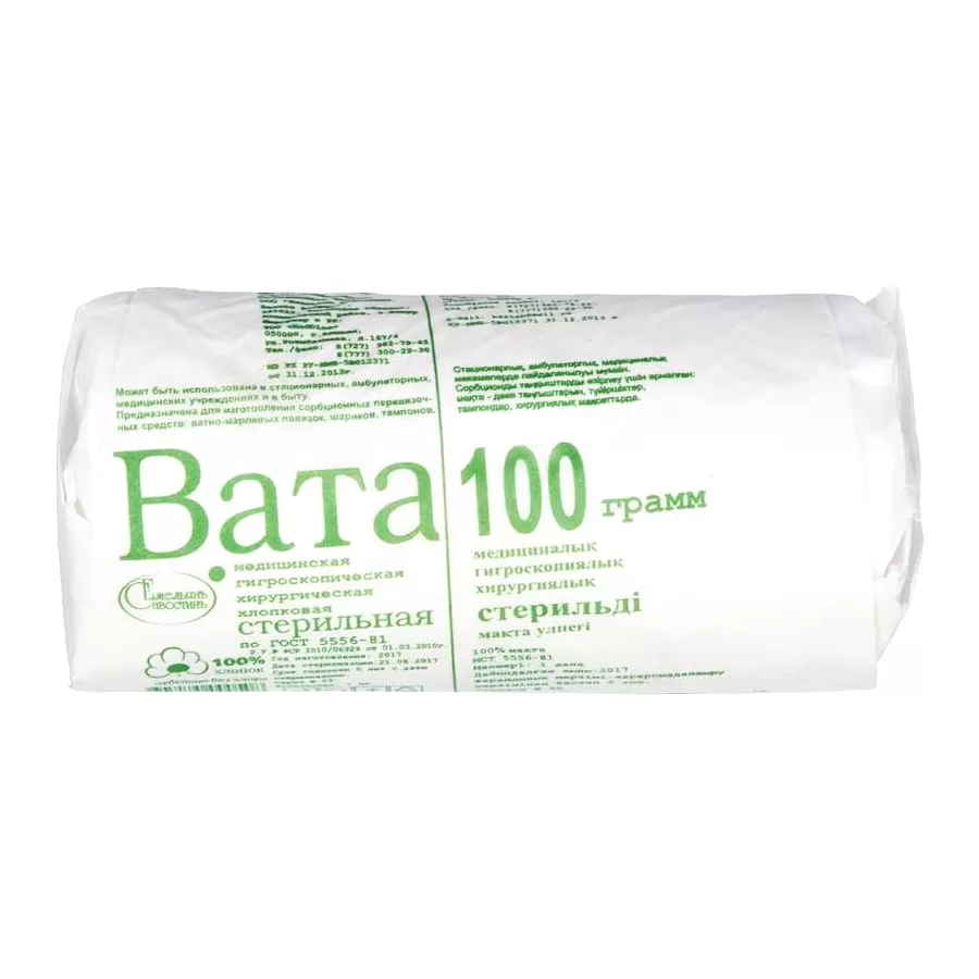 Вата медицинская гигроскопическая хирургическая стерильная применяется для обработки поврежденной кожи.