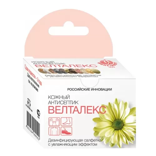 - содержит 1,75 г жидкого кожного антисептика, четвертичноаммониевое соединение и этиловый спирт, вспомогательные компоненты.