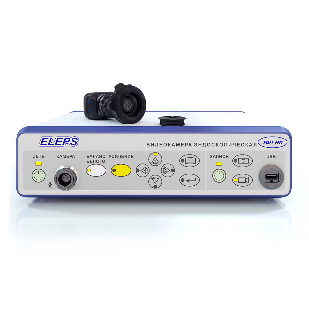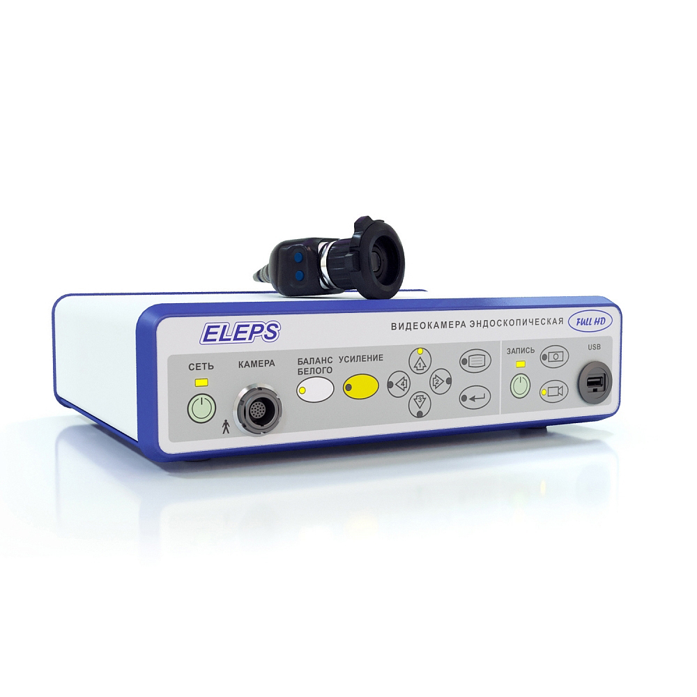 <p>Видеокамера эндоскопическая ELEPS Full HD предназначена для преобразования оптического изображения, создаваемого эндоскопом при всех видах эндоскопических исследований и операций, в полный телевизионный сигнал цветного изображения в формате HD 720p и сохранения снимка экрана в виде файлов в формате JPG на подключенный USB-flash накопитель.</p>