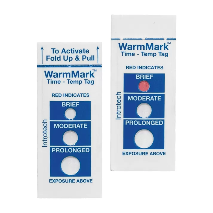 Одноразовый индикатор повышения температуры. Регистрирует общее время воздействия температуры, превышающей норму, до 48 часов. Лицевая панель индикатора имеет три окна - малое, среднее и большое - последовательно окрашивающиеся в красный цвет при превышении температуры на 2 °С выше температуры срабатывания. Если температура возвращается в пределы нормы, окрашивание приостанавливается. По степени окрашивания контрольного элемента оценивается общая продолжительность воздействия температуры, превышающей норму.