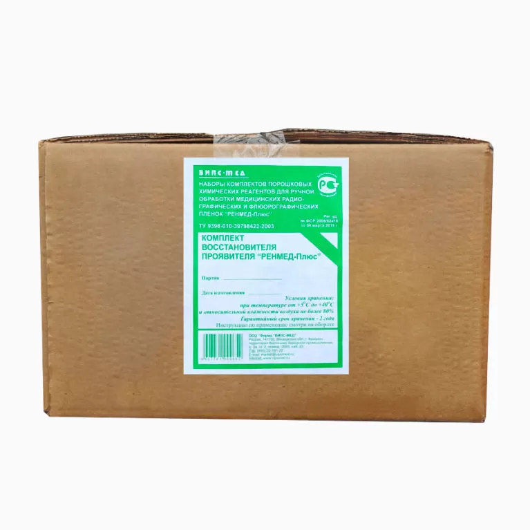 - Для приготовления рабочего раствора из химия ручной ""Ренмед-Плюс""на 15 л. используется обычная водопроводная вода. Обработка проявителем занимает 3-4 минуты (при температуре 23°С).