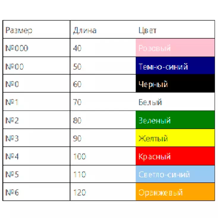 - Представлен в размерах: 000, 00, 0, 1, 2, 3, 4, 5, 6