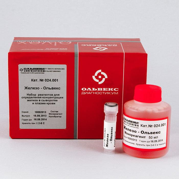 Набор реагентов «ЖЕЛЕЗО-ОЛЬВЕКС» предназначен для количественного определения содержания железа в сыворотке или плазме крови человека колориметрическим методом без депротеинизации.
