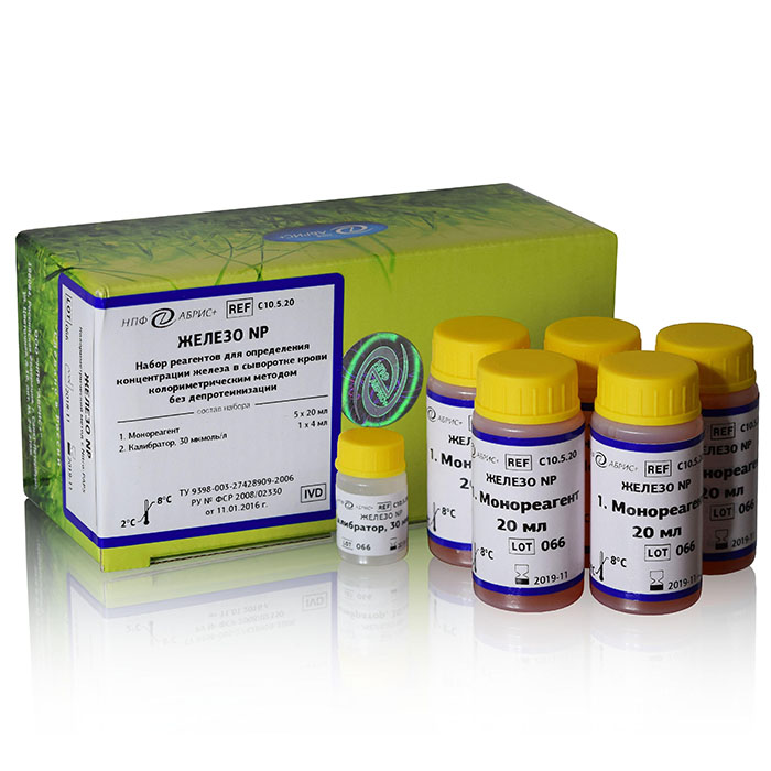 Набор реагентов для определения концентрации железа в сыворотке крови колориметрическим методом без депротеинизации.