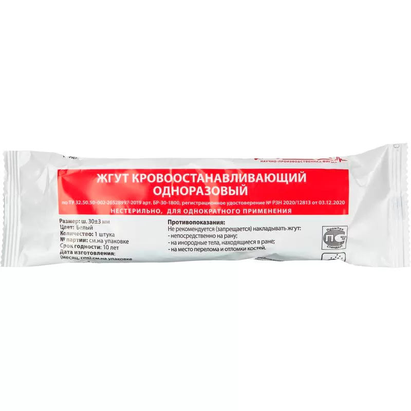 - Медицинский жгут изготовлен из текстильной ленты, которая производится из полипропиленовой нити.