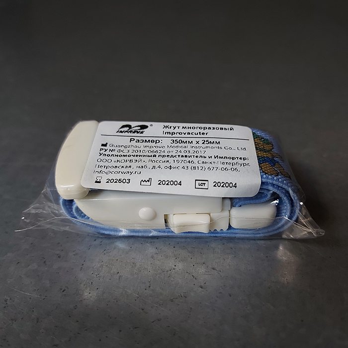 Многоразовый медицинский жгут (турникет) IMPROVACUTER предназначен для ограничения циркуляции крови при внутривенных манипуляциях, таких как взятие крови или проведение внутривенных инъекций. Снабжен удобным механизмом, позволяющим одной рукой зафиксировать жгут, расстегнуть его или ослабить. Изготовлен из эластичного материала, который снижает силу давления, делая ее умеренной, чтобы пациент не испытывал неприятных ощущений. Модель для детей выпускается с рисунками на ленте.