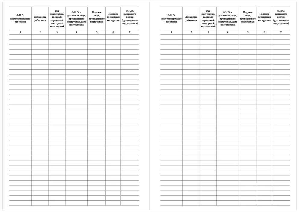 Графы для заполнения журнала инструктажа по технике безопасности, в т.ч. радиационной безопасности: