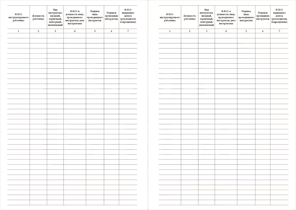 Графы для заполнения журнала инструктажа по технике безопасности, в т.ч. радиационной безопасности: