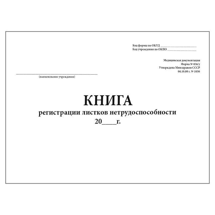 Графы для заполнения Книги регистрации листков нетрудоспособности (форма № 036/у):