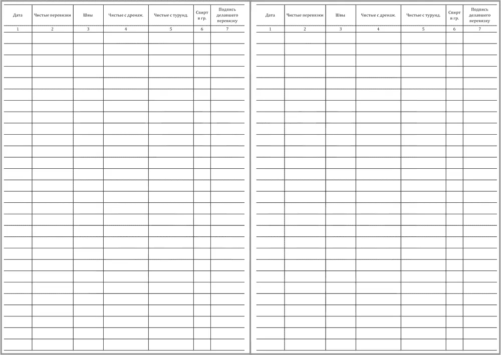 Графы для заполнения Журнала перевязок: