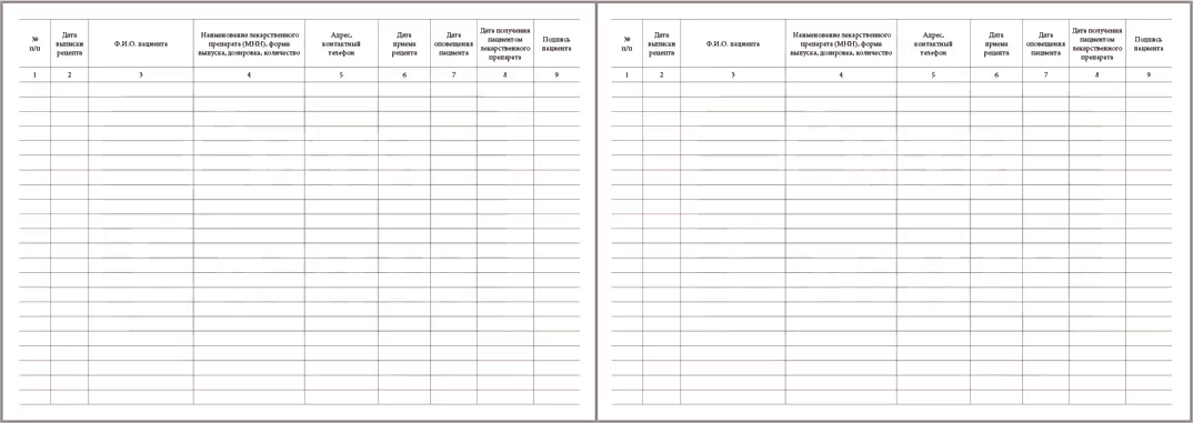Журнал по обеспечению лекарственными препаратами, входящими в минимальный ассортимент лекарственных препаратов, необходимых для оказания медицинской помощи.