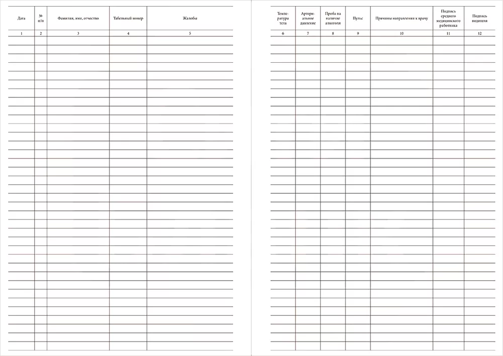 Журнал предрейсового осмотра водителей относится к документам строгой отчетности и должен быть пронумерован и прошнурован.