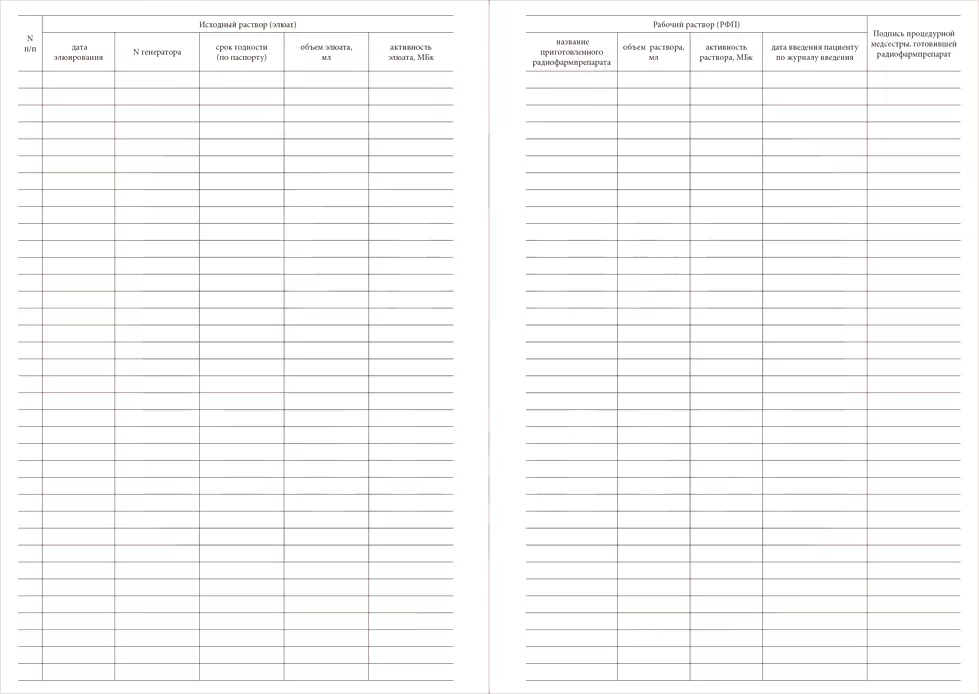 Журнал приготовления рабочих радиофармацевтических растворов 120 страниц мягкая обложка Приказ №8 к МУ 2.6.1.1892-04