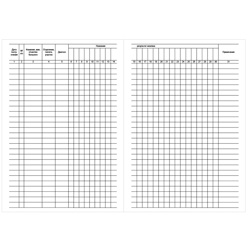 Журнал регистрации анализов и их результатов (форма 250/у) предназначен для регистрации и записи результатов анализов - биохимических, общеклинических, гематологических и пр.