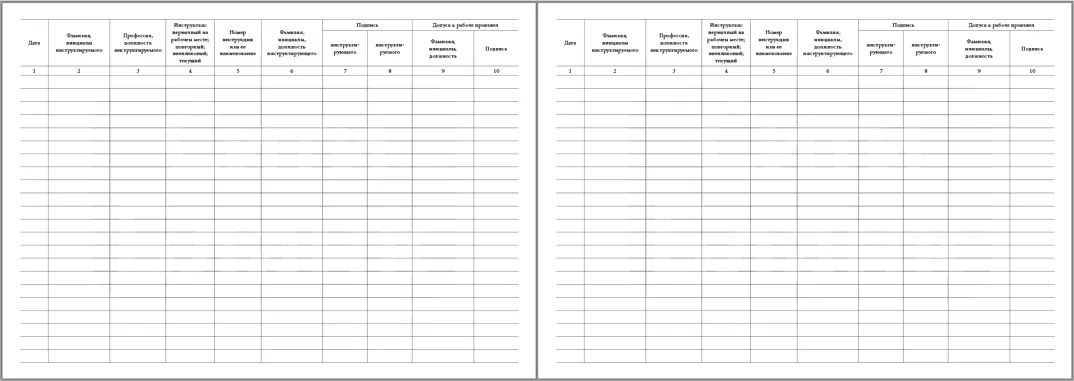 Графы для заполнения Журнала регистрации инструктажа на рабочем месте для рентген-кабинетов: