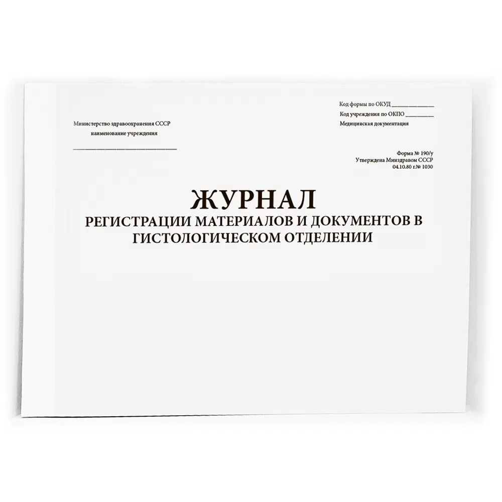 Графы для заполнения журнала регистрации материалов и документов в гистологическом отделении (форма 190у):