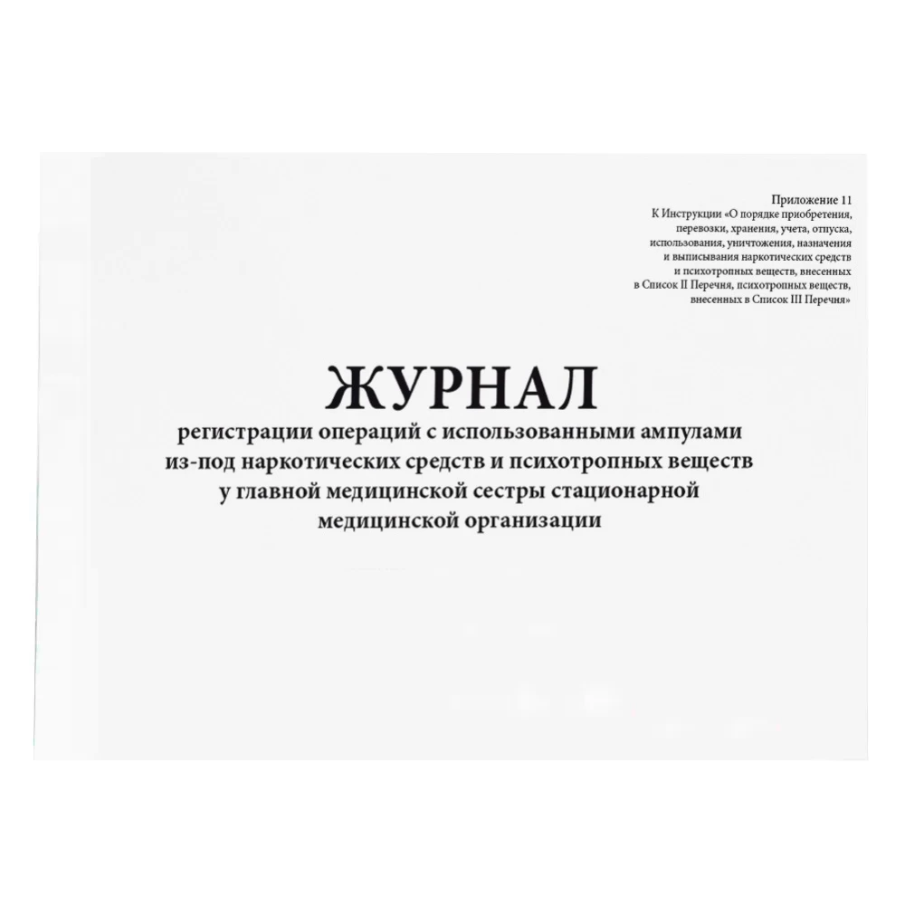 Графы для заполнения Журнала регистрации операций с использованными ампулами из-под наркотических средств (психотропных веществ) у главной медицинской сестры:
