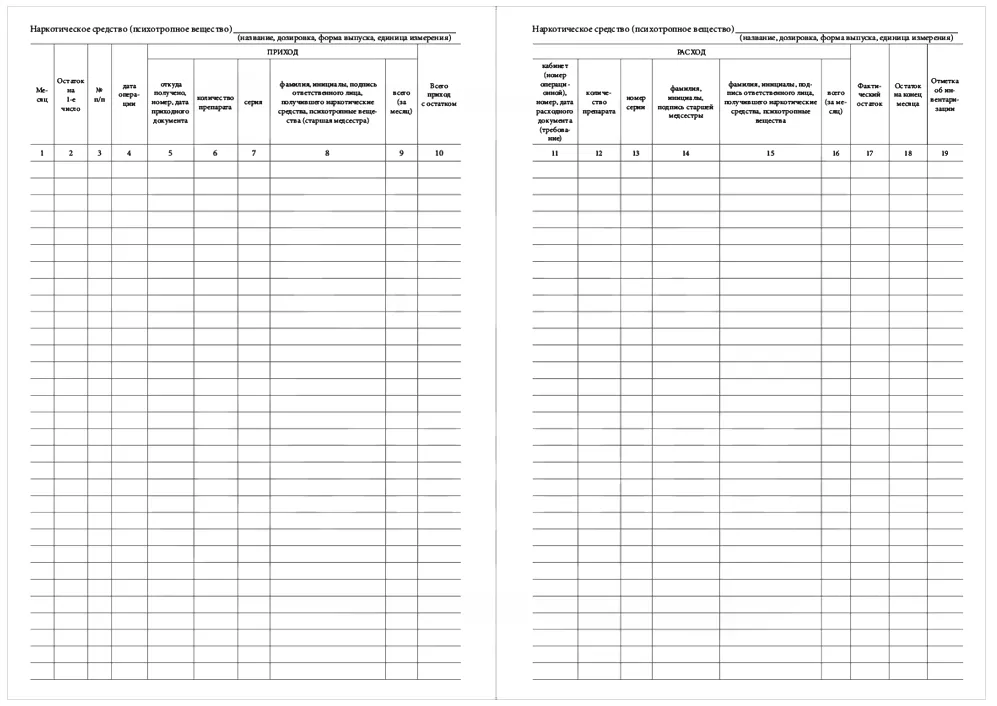- 5. фамилия, инициалы, под- пись ответственного лица, получившего наркотические средства, психотропные вещества