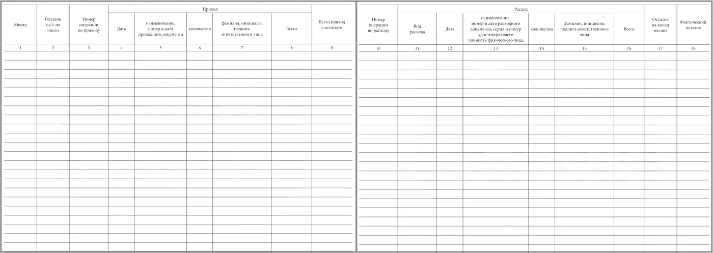 - Расход - Наименование, номер и дата расходного документа, серия и номер удостоверяющего личность физического лица