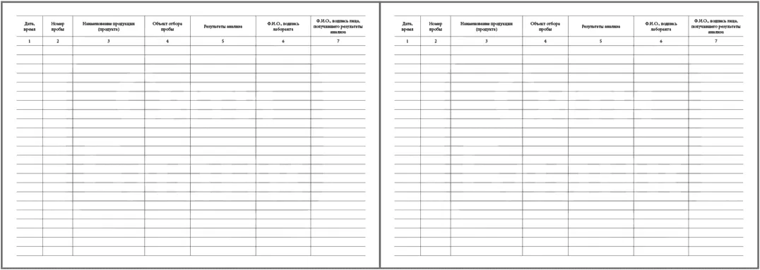Графы для заполнения журнала регистрации результатов производственного лабораторного контроля: